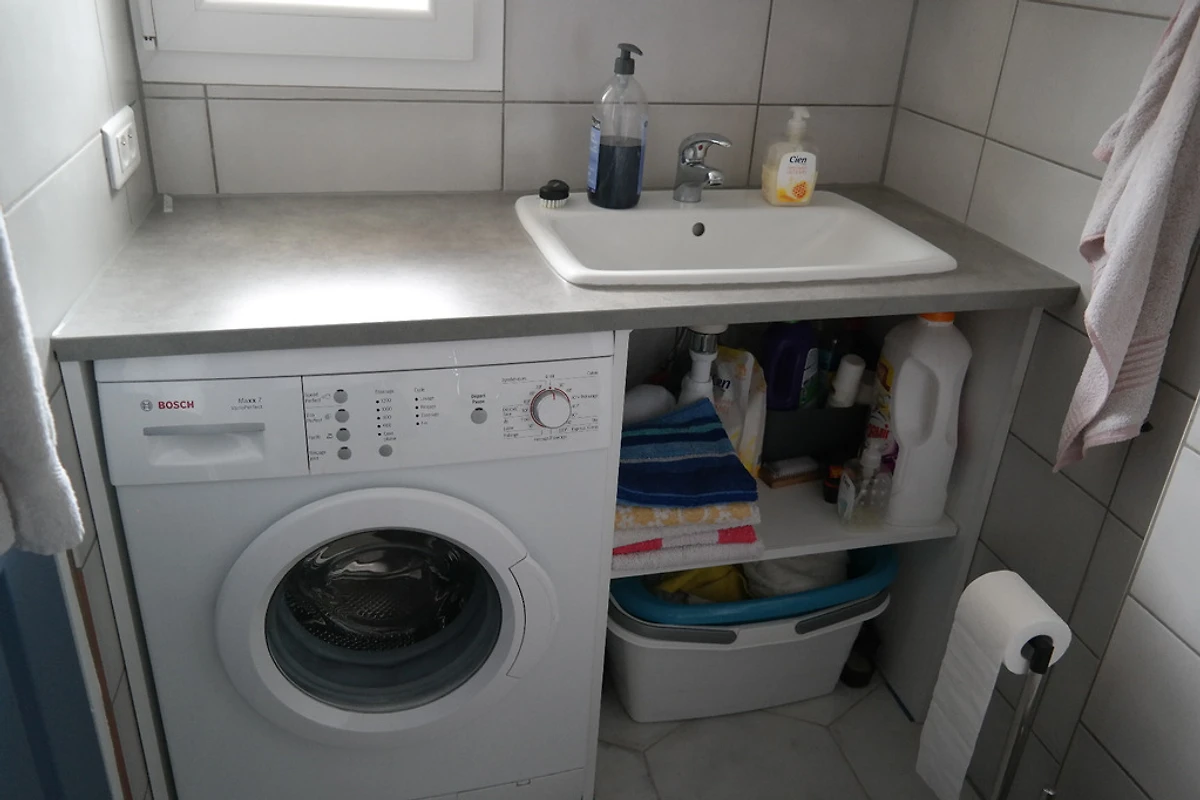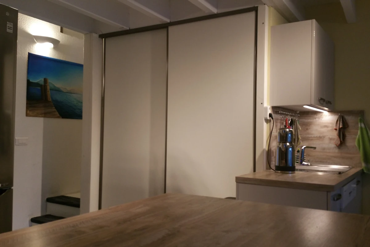 U svijetlom prizemlju se nalazi tuš kabina, spavaća soba, dnevni boravak s otvorenom, velikom, moderno novougrađenom kuhinjom sa šankom, koja je potpuno opremljena. Posuđa, pribora za jelo i kuhinjskog pribora ima u izobilju. Veliki hladnjak i zamrzivač, mikrovalna pećnica, pećnica, ploča za kuhanje s 3 ploče, aparat za espresso i kavu dio su opreme. Naravno tu je i perilica rublja koja se može koristiti na licu mjesta uz nadoplatu. Stanari koji vole kuhati cijenit će našu veliku i dobro opremljenu kuhinju.