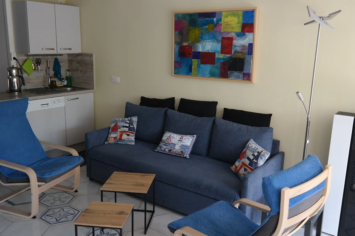 Očekuje vas vrlo udobno namještena, lijepa kuća s neobičnim i ukusnim namještajem. Vrlo je tiho u jednosmjernoj ulici bez prolaznog prometa. Ima 2 terase od kojih je jedna velika na prvom katu. Odavde se pruža prekrasan pogled na more. Ponekad se može čuti i tihi šum valova koji se razbijaju o more. Ako bi trebalo biti malo prohladno, možete se udobno smjestiti u integriranom zimskom vrtu. Odatle se izlazi na donju terasu i mali vrt s prostorom za roštilj.