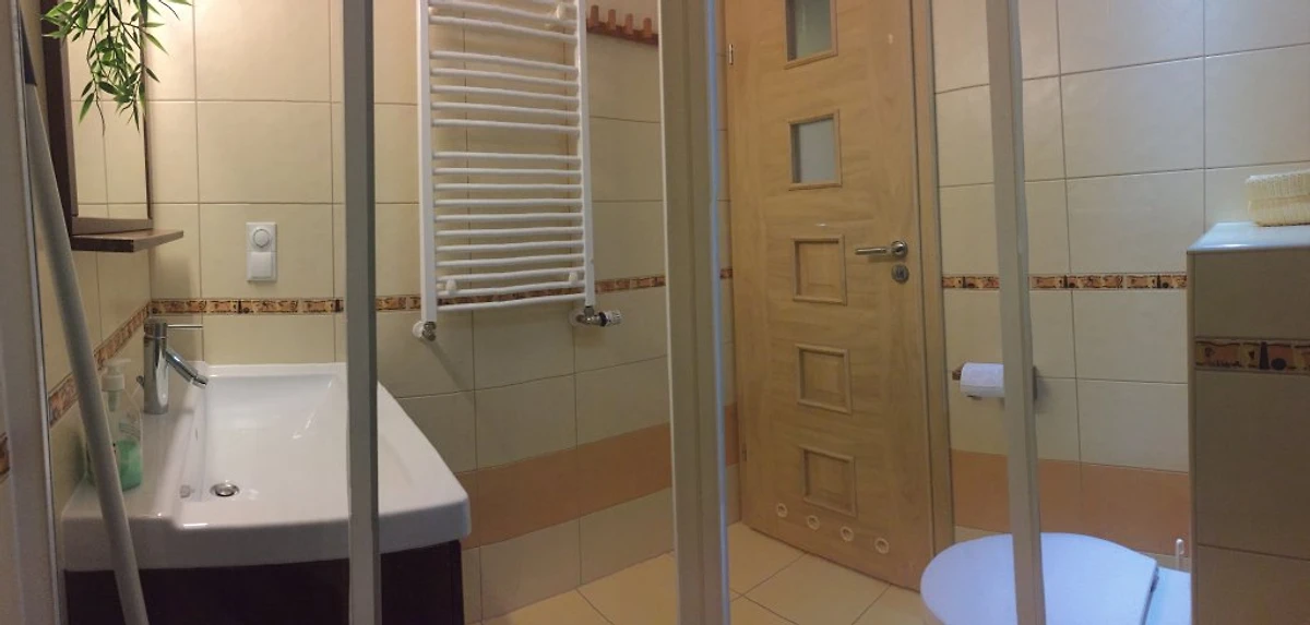Naš apartman sa 2 sobe (dnevni boravak u. Spavaća soba), kuhinja, hodnik, kupatilo (tuš kabina, WC), ima dnevni boravak od 34 metara kvadratnih.