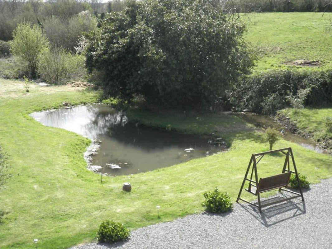 Na južnoj strani šljunkom dvorište s vrtnom garniturom (namještajem, roštilj, ležaljke, suncobran, klupa, itd) i lijepi veliki travnjak s ribnjaka poziva za sunčanje, roštiljanje i odmor. Iz kuhinje imate pristup još 300 metara kvadratnih, u potpunosti ograđen vrt s vrtnom garniturom i sušenje rublja - savršen za opuštajući odmor s psima.