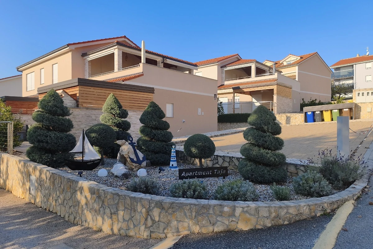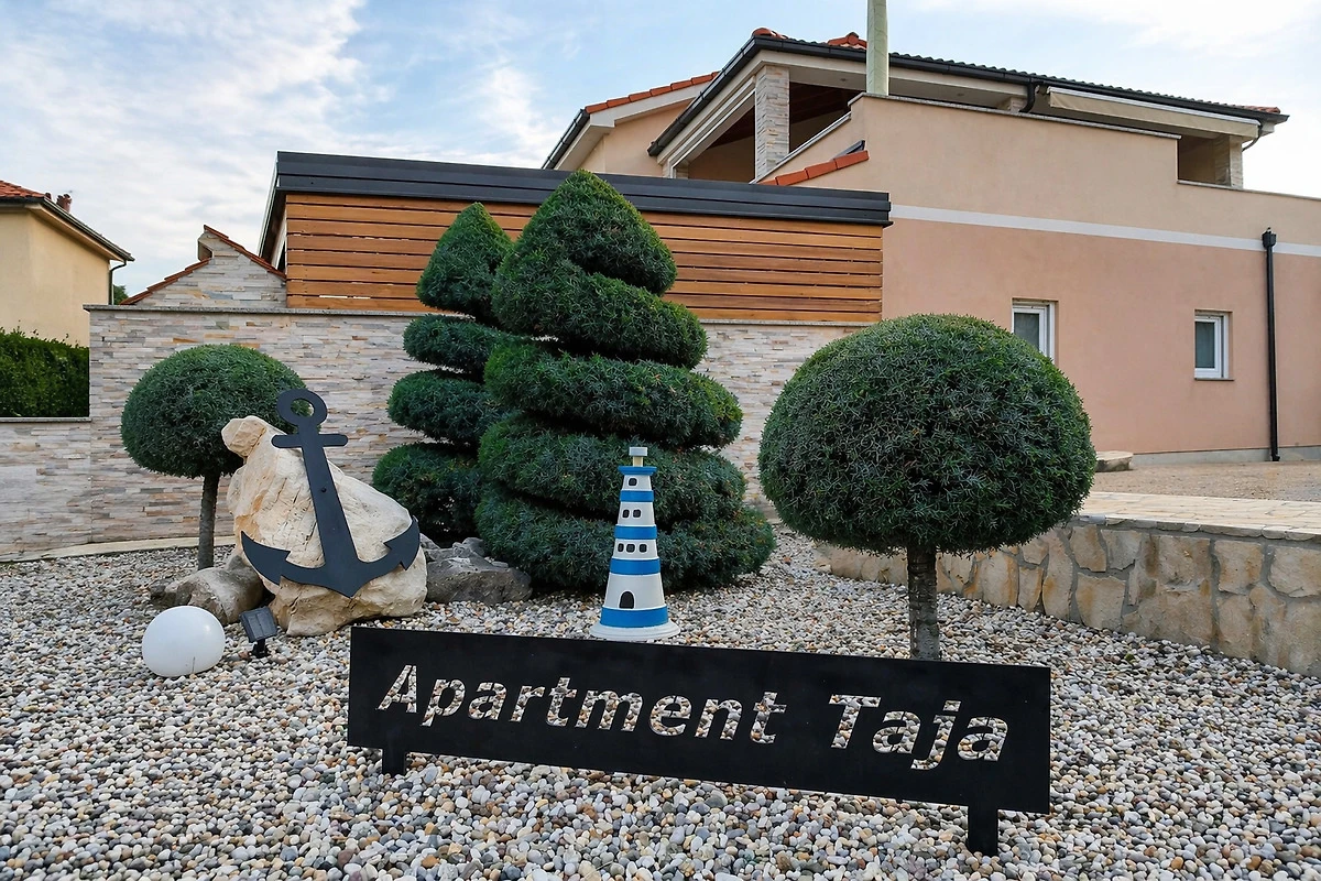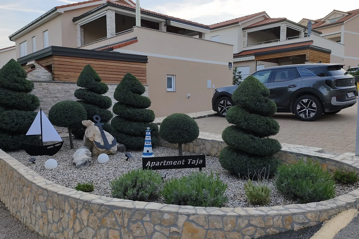 Posebnost ovog apartmana je prostrana, sjenovita terasa opremljena stolom za više osoba, roštiljem i radnom površinom s umivaonikom – savršeno za pripremu svježih morskih plodova. Srce terase je grijani jacuzzi u kojem možete opuštati u potpunoj privatnosti i uživati u pogledu na zelenilo. Dodatne pogodnosti uključuju klima uređaj, zaštitu od komaraca, rolete, posteljinu, ručnike i privatno parkiralište uz kuću, što jamči udobnost i sigurnost.
