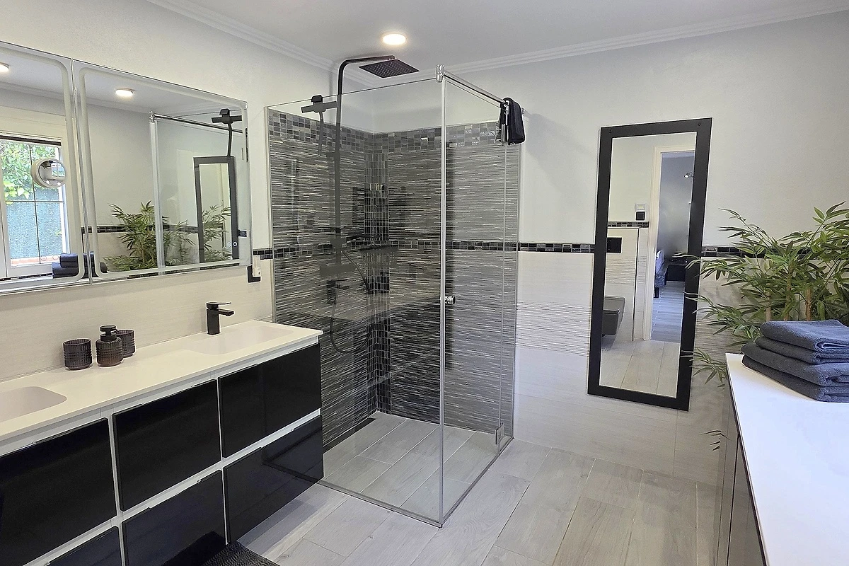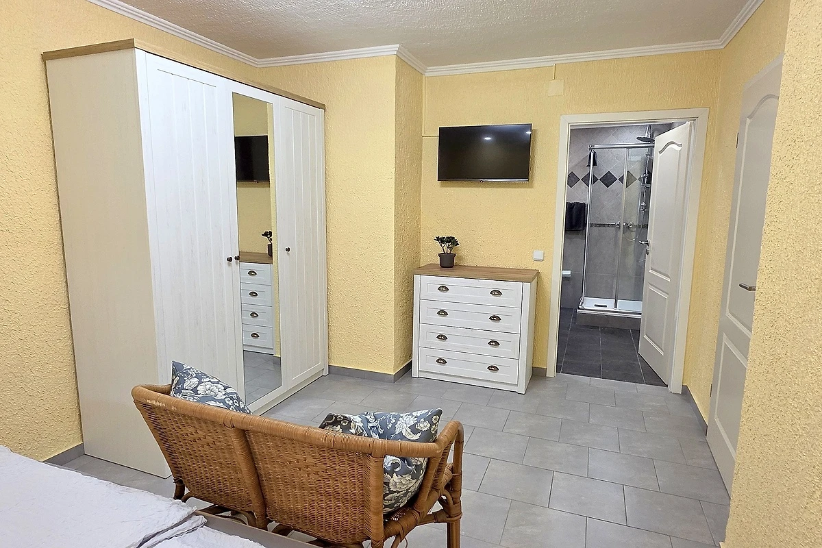 - 3 spavaće sobe – svaka s bračnim krevetom, klima uređajem, vlastitom kupaonicom i SAT-TV-om (Smart-TV)