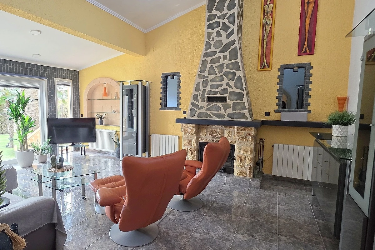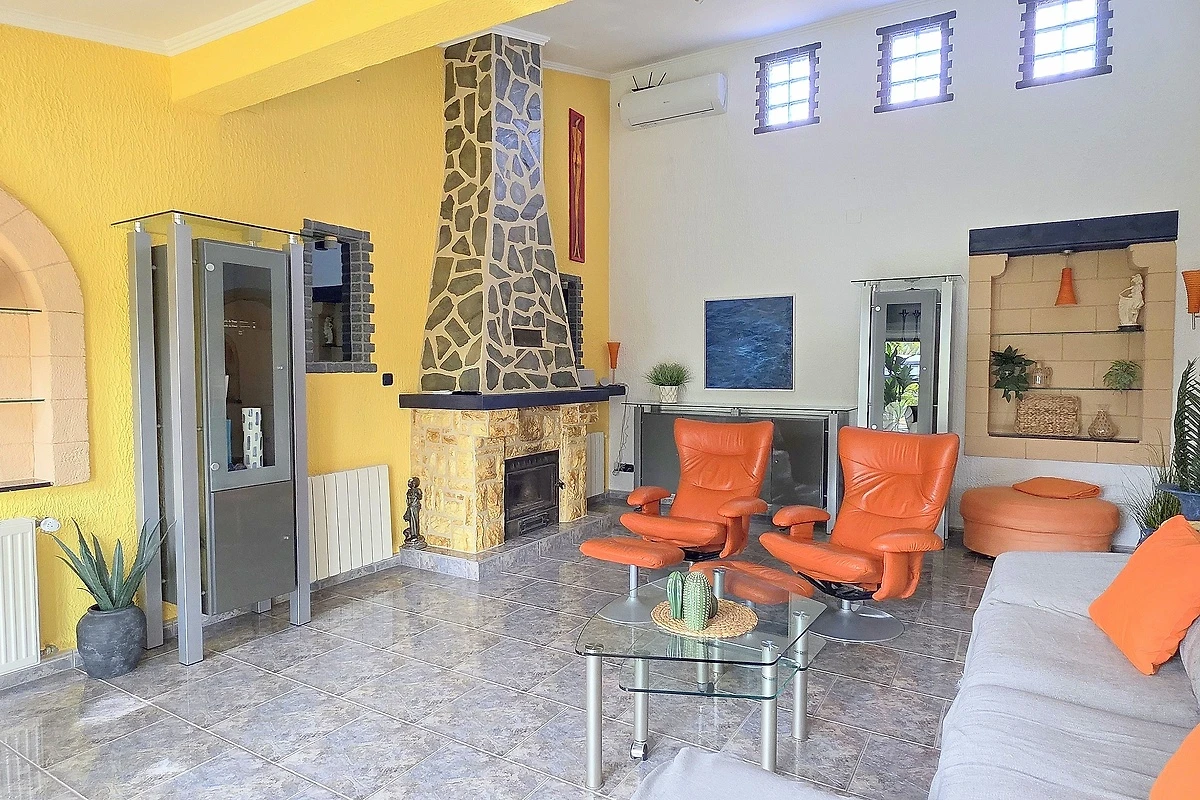 - 1 dnevni boravak opremljen SAT-TV-om (Smart-TV), klima uređajem, kaminom i kožnim namještajem