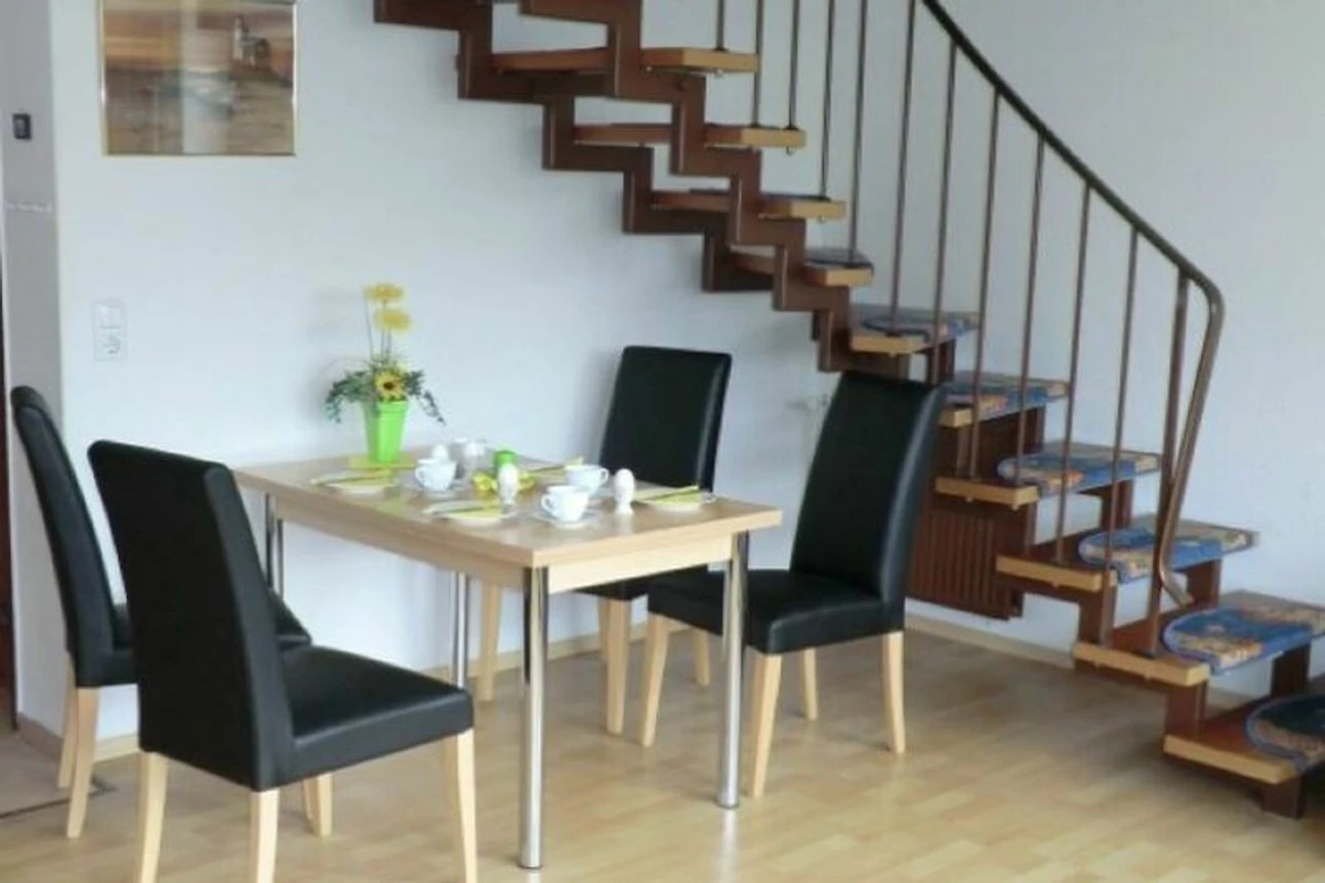 U prizemlju se nalazi otvoreni dnevni boravak i blagovaonica s kuhinjom, tuš kabinom s kišnim tušem i perilicom rublja koja se ne naplaćuje. Na gornjem katu nalazi se spavaća soba s bračnim krevetom od 2 m (dodatno s krevetićem 140x70), druga spavaća soba s dva velika kreveta za jednu osobu (bez kreveta na kat!) i vanjska natkrivena sunčana terasa od 17 m2, okrenuta prema jugu, na koju se može pristupiti s dnevni boravak s vrtnom garniturom, mali vrtni prostor s travnjakom za sunčanje i malim vrtnim vratima, vrtna kućica za bicikle i parkirno mjesto na posjedu na kraju vrta.
